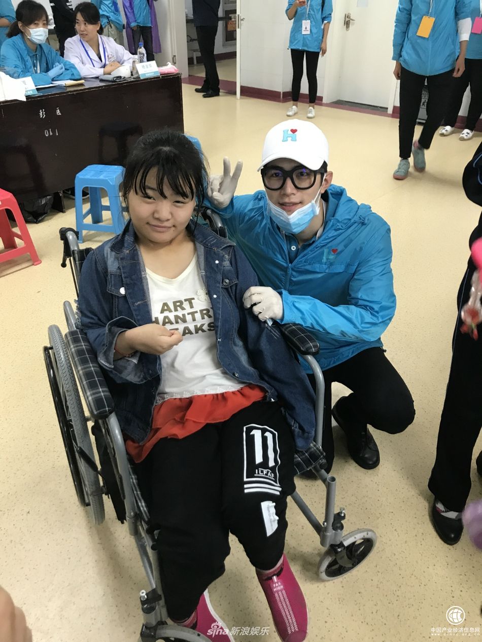 陳學冬與腦癱女孩合影。
