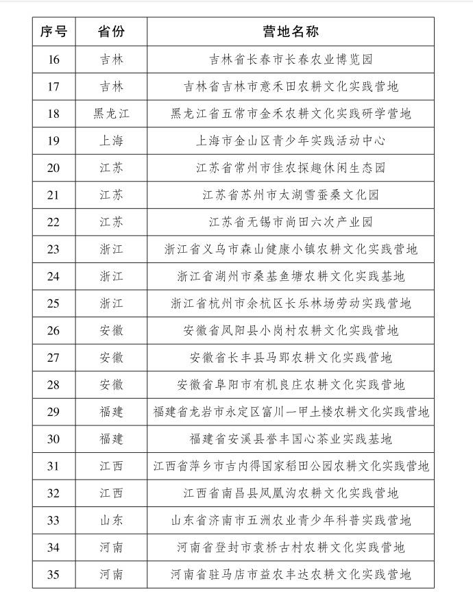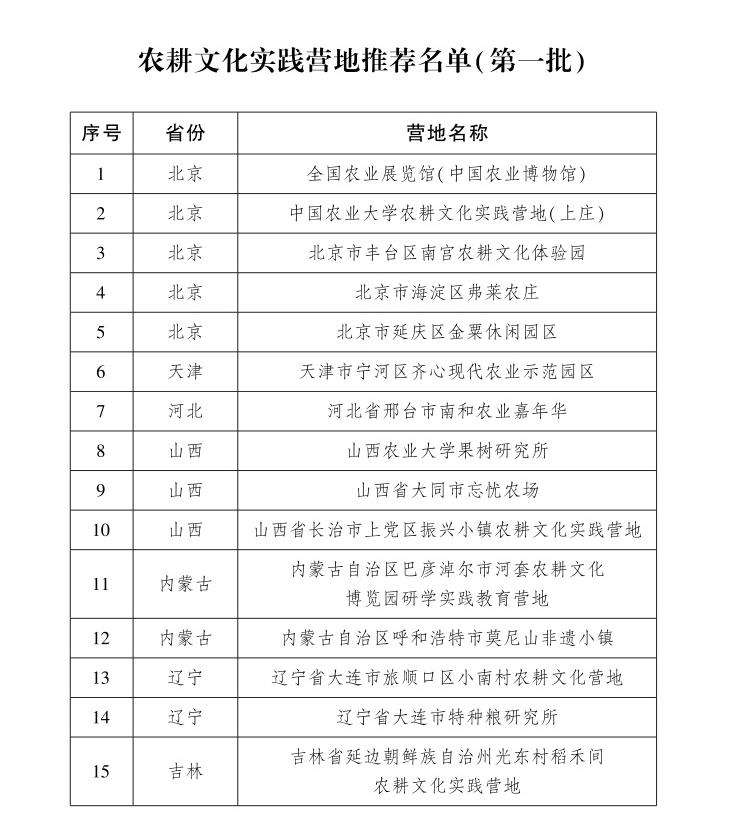 記者從農業農村部官網獲悉,農業農村部辦公廳、共青團中央辦公廳、全國少工委辦公室聯合公布了首批農耕文化實踐營地推薦名單,全國農業展覽館(中國農業博物館)等60個單位入選其中。