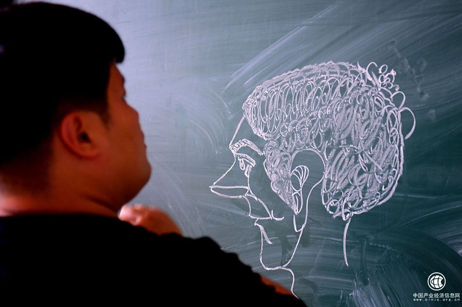 自閉癥孩子最大的特點就是對外界事物不感興趣,不大察覺別人的存在,很少主動與人交流,但羅楊老師并沒有放棄教張原郡彈鋼琴。圖為張原郡獨自在黑板上畫畫。