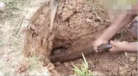 找到蛇洞后,姐姐用工具把土撬開,弟弟則將蛇拉出來。看得出來,姐弟倆人分工明確,如果不是有多次的捕蛇經驗,他們不會如此淡定。