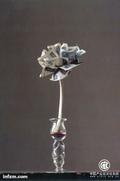 展廳門口陳設的小型裝置作品《一個童話》創作于1994年,那時趙半狄放棄繪畫不久。裝置簡單,一個小玻璃杯盛著雞血,一根動物骨頭插到血中,另外一頭則固定著幾張鈔票疊成的紙花。作品標題與外觀反差強烈,趙半狄認為,自己在其中平衡了優雅與殘忍。“這個作品表達的并不是美,是對美的詢問。”趙半狄說,它還詢問了價值和方向感。