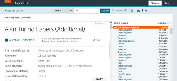 其中包括一封1952來自英國情報機構國家通信總局(GCHQ)的信件,這是圖靈二戰期間工作的機構,詢問圖靈能否提供一張自己的私人照片,用在由美國密碼學家威廉·弗里德曼編纂的布萊切利園(注:是一座位于英格蘭米爾頓凱恩斯布萊切利鎮內的宅第。二戰期間,布萊切利園曾經是英國政府進行密碼解讀的主要地方)官方歷史中。