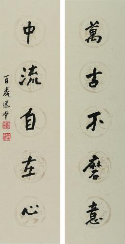 饒宗頤《萬古不磨意中流自在心》書法中國美術館藏