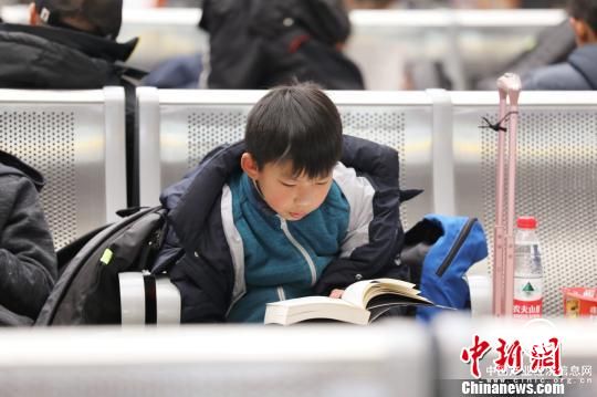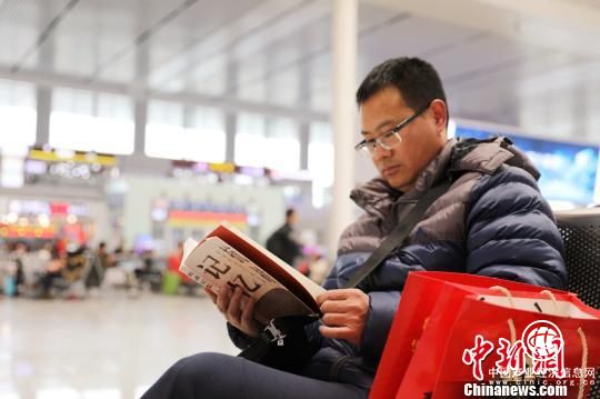 圖為旅客在購置書籍后在候車室閱讀。夏曉云攝