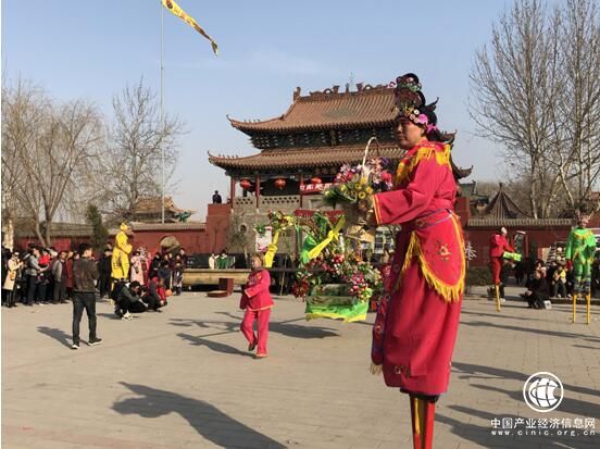 "看!葫蘆上畫的小狗真可愛!""這是烙畫,用烙鐵烙出來的,寓意狗年好運旺!"民間藝人曹和平向周圍的群眾解說著。在文創產品展銷區,以西門豹投巫治鄴、鄴城銅雀三臺、曹操父子、建安文學等為題材的烙畫、剪紙、鎮尺等文創產品細致精妙。包括"鬼谷子傳說、河南(郭小屯)墜子、攆花、高蹺皇杠"在內的一批國家級、省級非物質文化遺產及鄴城特色文化民俗亮相大集,由非遺傳承人現場進行非遺展示。臨漳獨特的李家村高蹺皇杠、西街攆花、河南(郭小屯)墜子、西狄邱落子,讓圍觀群眾的喝彩聲與掌聲此起彼伏。"這些國家級和省市級的非遺項目,在傳承文化的同時也在內容和形式上進行了創新,讓數萬群眾、在外創業回鄉人士及外地游客近距離接觸民間傳統習俗。"該縣文化館館長苗耕川介紹。