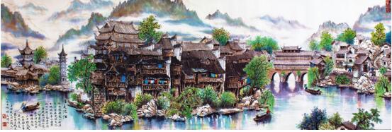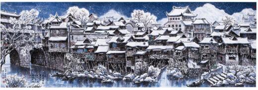 作品多以苗嶺風光土寨小景、沱水吊樓古居民宅為表現對象及創作素材。其用筆大膽潑辣蒼勁古拙、寧靜而富有詩意具有很濃的民族氣息。作品遵循古法以傳統為根自然為師,色彩厚重明麗,淡雅而不俗與時俱進有較強的時代感。作品多次參加省內外各級展出并得到好評與嘉獎深受海內外人士收藏。2008年作品《小溪吊樓》分別在中國美術館與湖南美術館展出。同年本人繪制的首份《鳳凰古城手繪地圖》由湖南省地圖出版社出版發行。2011年作品《沱水舊樓》入選慶祝中國共產黨成立九十周年全州美展。2012年《山青水秀奪翠樓》在全國書畫大賽中獲銀獎。蠟染作品《花卉一組》、《古城一角》獲湖南工藝美術職院第二屆學院獎,優秀獎。2015年作品《瑞雪紛飛兆古城》參加湘西名家書畫攝影聯展。2016年多幅作品入選《香港藝術家》雜志并刊登發行。同年湘西人物訪談“善畫吊樓的湘西漢子”由“本真文藝”欄目對其藝術人生進行專訪與媒體報導。2017年赴香港參加“慶祝香港回歸20周年”大型詩書畫文化藝術節暨頒獎盛典,被組委會授于“杰出畫家”的榮譽稱號。作品《山鄉春曉》被香港組委會收藏。作品《古城奪翠》入編《中國文化進萬家精品日歷》被評為“最具收藏價值書畫名家”。2018年元月,多幅作品入選,由中國郵政總局出版的為“慶祝中國共產黨十九大勝利召開”,《不忘初心,繼續前進》限量版精美郵冊在全國發行。(張興、搖擼)