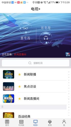 央視客戶端的“電視+”欄目,通過“聽電視”功能增添了音頻傳播
