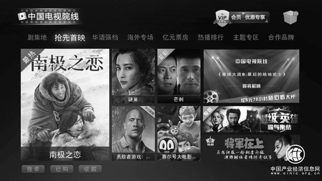 首映廳是在現有中國電視院線專區基礎上選擇部分影片推出的精品專區產品,同時在線3部影片,以包年形式進行銷售,主打賣點是“好電影無需選擇”。首映廳產品內容呈現清晰、觀影操作簡單、價格門檻較低,在上線區域獲得用戶的普遍認可。首映廳產品目前已在山東、河南、河北、寧夏、重慶、云南、天津等地上線。