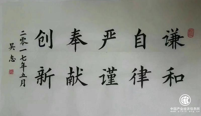 吳志家庭為書香世家,祖孫三代都擅長書法寫作,他從小蒙其教誨,自幼師承家學,聰明好學,少年時期便已負盛名。后吳志遍訪名師,融會貫通,取百家之長,自成一派。數十年翰墨丹青,筆耕不綴。善長楷書。歐楷,柳楷,顏楷在其字中均可得見。吳志的楷書大氣磅礴,瀟灑倜儻,其字形俏俊飄逸,變幻莫測、字里行間具有著強烈的視覺美感及其內在美感。