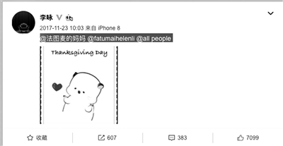 三人的微博上,一家三口的互動和幸福的日常是最溫馨的內容。有人注意到,2017年4、5月份開始,哈文每天在微博上發“早安貼”,算下時間,也許那時哈文知道李詠生病了。 而李詠的最后一條微博“定格”在了2017年的感恩節。11月23日,他發了一條祝福信息,感謝妻子女兒,以及所有人。(記者 祖薇)