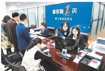 浙江省臺州市行政服務中心的工作人員在給市民辦理業務。新華社記者 殷博古攝