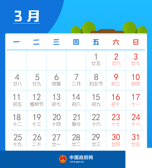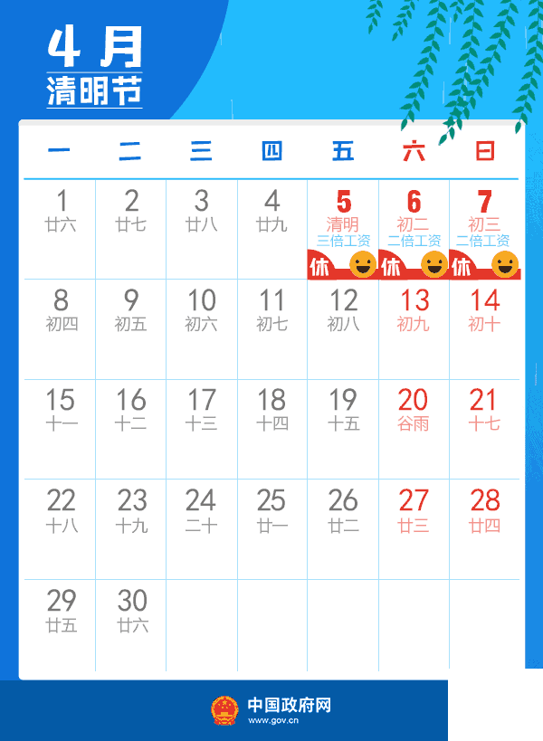 三、清明節:4月5日放假,與周末連休。