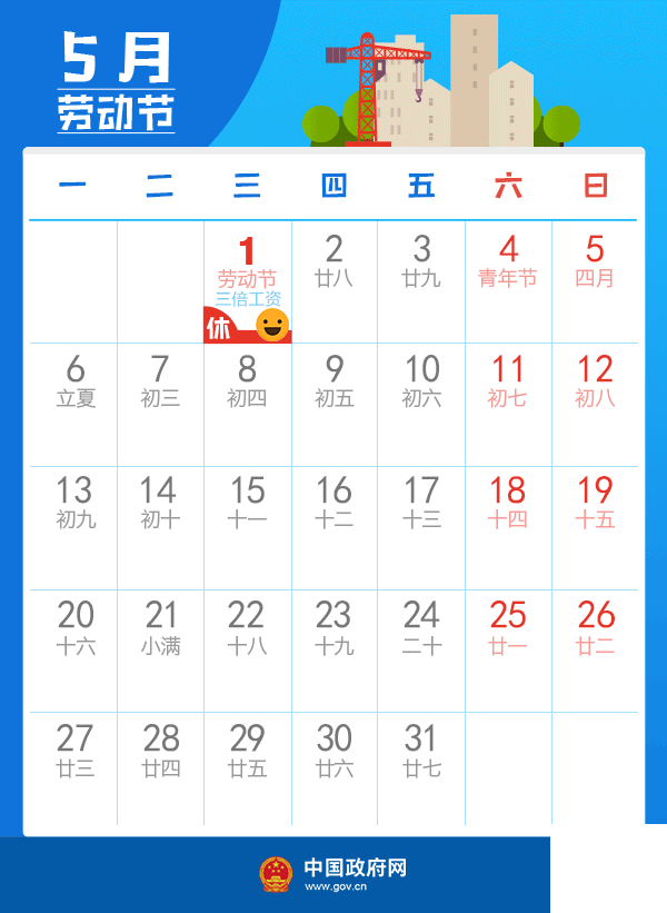 四、勞動節:5月1日放假。