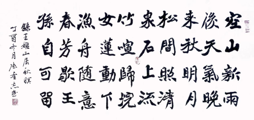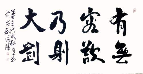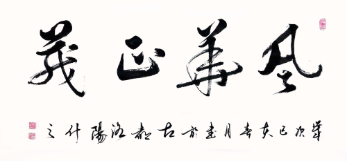 苦心研練書法,魏、晉、唐、宋等各家書技無不精研,尤擅魏碑、行草兼及楷隸,博采諸家風范,溶集于一爐,上下求索,形成了自己別具風韻的書藝風格,書法作品多次在全國、省市各類比賽中獲獎,并被諸多知名人士和社會各界收藏。特別在中國第六批赴非洲維和期間,廣泛傳揚中國文化,教駐地民眾和出兵國官兵識漢字,練書法,其作品被聯非團、聯蘇團及出兵國司令長官和部分駐非國使館收藏。
