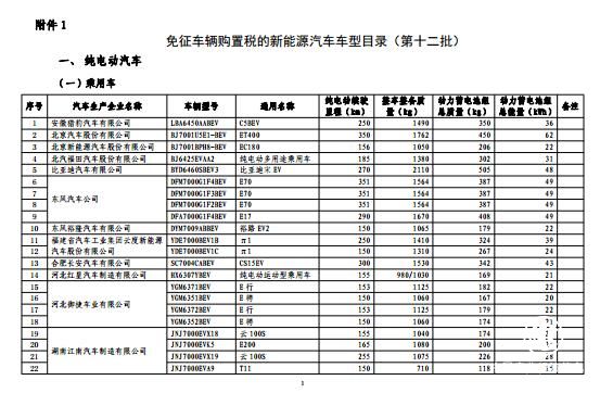 附件:免征車輛購置稅的新能源汽車車型目錄(第十二批)