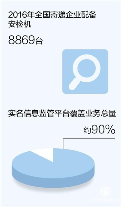 為了實現寄遞流程可跟蹤、隱患可發現、責任可追溯,近年來收寄驗視、實名收寄和過機安檢制度正大力推廣。2016年全國寄遞企業已配備安檢機8869臺,截至6月底,國家郵政局實名信息監管平臺共接入郵政EMS、順豐、申通、中通、圓通、韻達、百世等主要品牌寄遞企業數量達10家,占行業業務總量約90%。