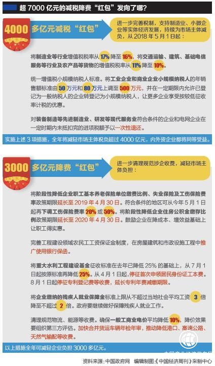 今年的政府工作報告對減稅降費提出的具體減稅目標是:進一步減輕企業稅負,全年再為企業和個人減稅8000多億元;大幅降低企業非稅負擔,全年要為市場主體減輕非稅負擔3000多億元。