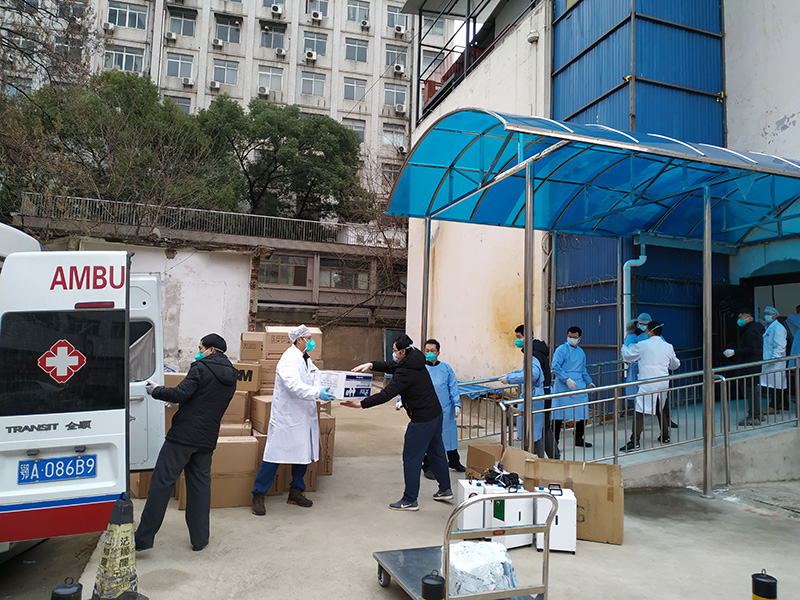 由科大訊飛捐贈的醫療物資送抵武漢大學中南醫院(1月27日攝)。新華社發