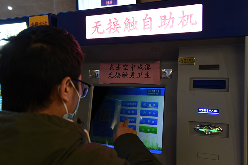 在位于合肥市的中國科學技術大學附屬第一醫院,就診者使用“無接觸自助機”(3月9日攝)。新華社發(周牧 攝)