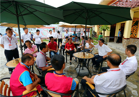 調研組一行首先來到大里黎家客棧,聽取大里地區精準脫貧、美麗鄉村建設、環境衛生整治等方面工作開展情況的匯報,并與鎮、村干部進行現場座談。