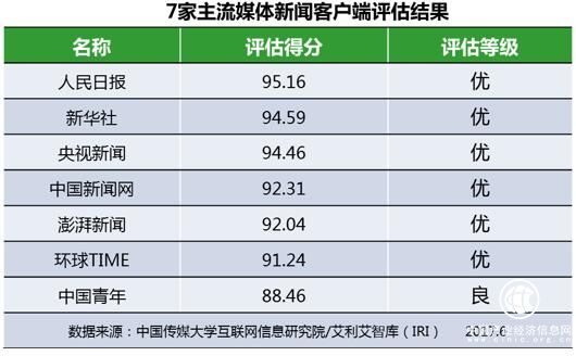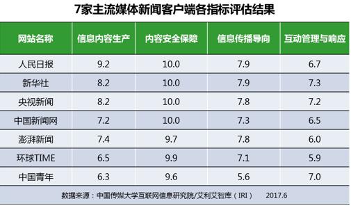 主流媒體新聞客戶端總分情況如下:
