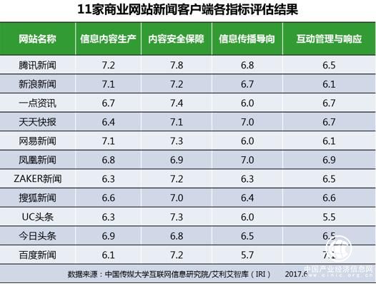 商業網站新聞客戶端總分情況如下: