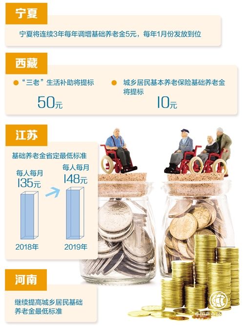 比如,青海省從2019年1月1日起,對65周歲及以上的參保人員,城鄉居民養老金每人每月再增加5元。廣西發布的調整方案顯示,從2019年1月1日起,給65歲及以上參保城鄉老年居民加發老年基礎養老金。