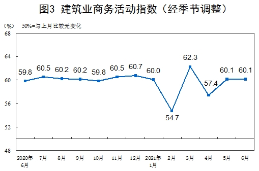 業務活動預期指數為60.8%,比上月回落2.1個百分點,仍位于高位景氣區間,表明非制造業企業對行業發展繼續看好。分行業看,建筑業業務活動預期指數為63.2%,比上月回落2.5個百分點;服務業業務活動預期指數為60.4%,比上月回落2.0個百分點。