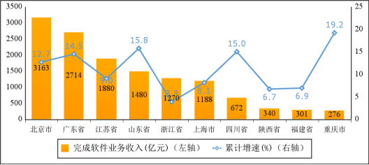 中心城市軟件業務收入穩步增長。1—2月份,全國15個副省級中心城市實現軟件業務收入7431億元,同比增長10.0%,占全國軟件業務收入比重為51.4%,占比較去年同期回落0.5個百分點。其中,成都、濟南、廣州、深圳和大連軟件業務收入增速超過全行業整體增速。