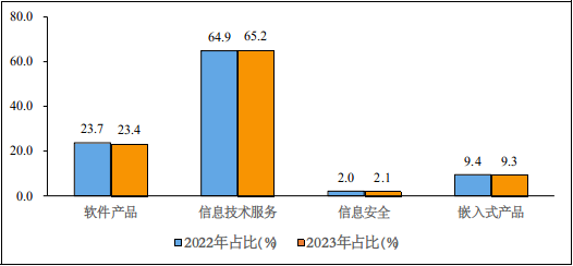 圖4 2022年和2023年1—2月份軟件業分類收入占比情況