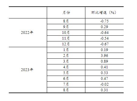 根據季節調整模型自動修正的結果,對2022年8月份以來的社會消費品零售總額環比增速進行修訂。修訂結果及2023年8月份環比數據如下: