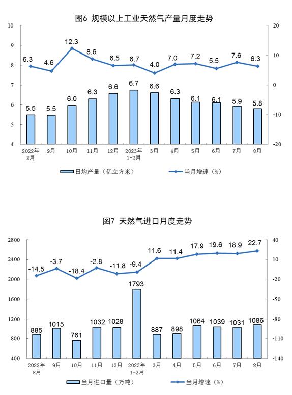 1—8月份,生產天然氣1521億立方米,同比增長5.7%。進口天然氣7771萬噸,同比增長9.4%。