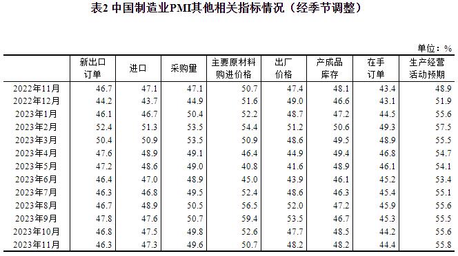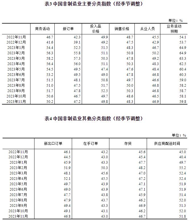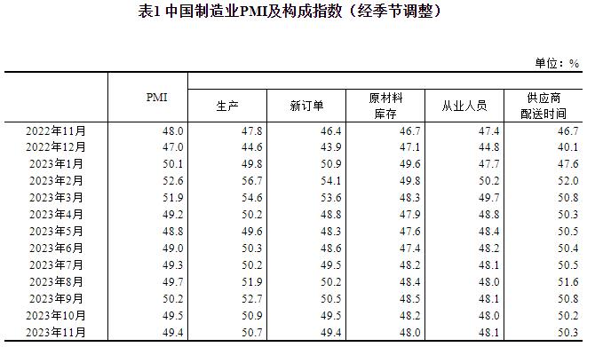 2023年11月中國采購經理指數運行情況