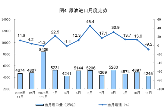 進口數據來源于海關總署,其中2023年11月份數據為快訊數據。