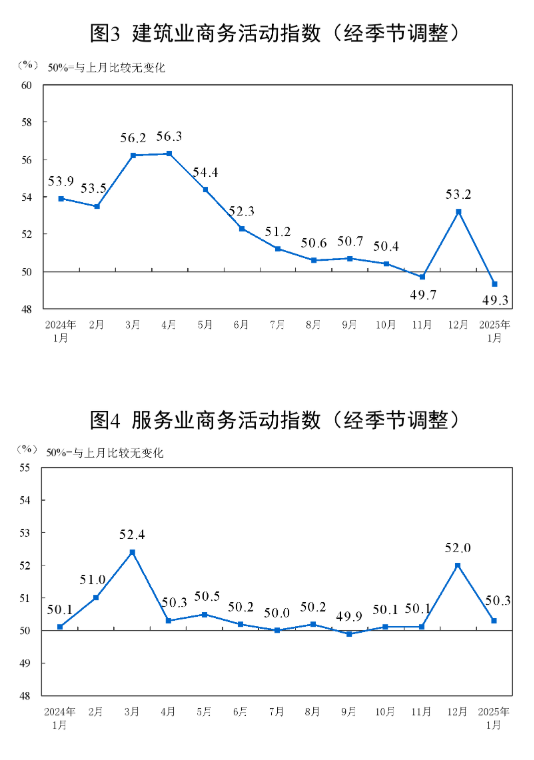 分行業看,建筑業商務活動指數為49.3%,比上月下降3.9個百分點;服務業商務活動指數為50.3%,比上月下降1.7個百分點。從行業看,航空運輸、郵政、電信廣播電視及衛星傳輸服務、貨幣金融服務等行業商務活動指數均位于55.0%以上較高景氣區間;居民服務、文化體育娛樂等行業商務活動指數均低于臨界點。