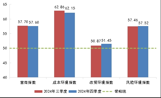 為進一步完善小微企業金融服務監管評價制度,推動小微企業金融服務持續健康發展,金融監管總局在11月修訂了《銀行業金融機構小微企業金融服務監管評價辦法》,引導銀行業金融機構加大服務供給,優化信貸結構,明確對單戶授信1000萬元以下的小微企業貸款不納入集中度考核,釋放銀行信貸供給空間,通過“定向工具+制度創新+財政聯動”形成政策閉環,為小微企業高質量發展注入強勁動能。指數結果顯示,截至2024年四季度末,小微融資營商政策環境指數達51.45點,環比上漲1.14%。