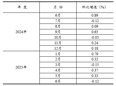 根據季節調整模型自動修正結果,對2024年6月份以來的固定資產投資(不含農戶)環比增速進行修訂。修訂結果及2025年6月份環比數據如下:
