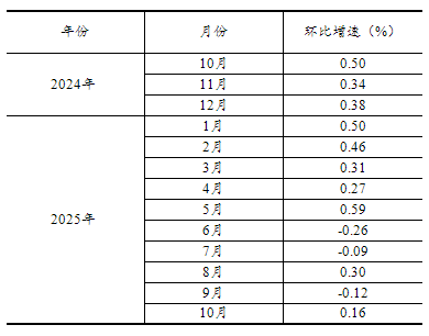 根據季節調整模型自動修正的結果,對2024年10月份以來的社會消費品零售總額環比增速進行修訂。修訂結果及2025年10月份環比數據如下: