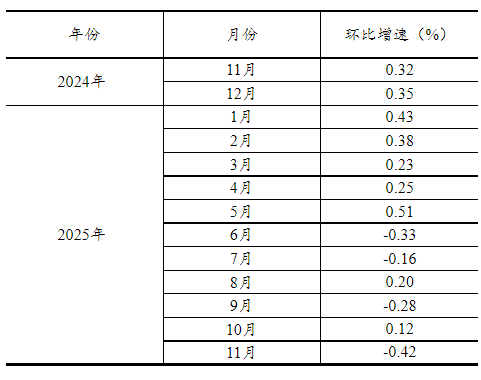 根據季節調整模型自動修正的結果,對2024年11月份以來的社會消費品零售總額環比增速進行修訂。修訂結果及2025年11月份環比數據如下: