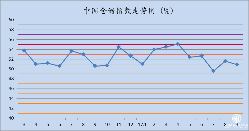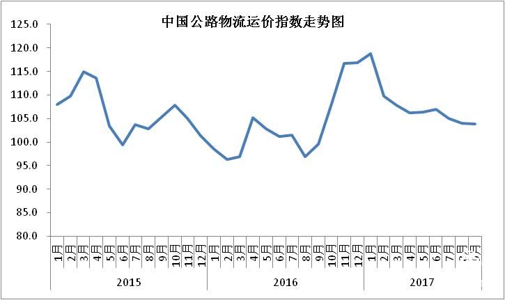 據中國物流與采購聯合會官網消息,2017年9月份中國物流業景氣指數為54.3%較上月回升0.8個百分點;中國倉儲指數為50.9%,較上月回落0.7個百分點;中國公路物流運價指數為103.9點,比上月回落0.1%;中國電商物流運行指數同比指數為123.6點,比上月回升3.2點。