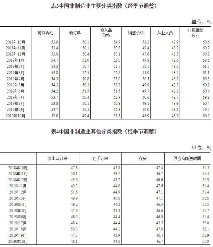 2019年10月份,非制造業商務活動指數為52.8%,比上月回落0.9個百分點,表明非制造業總體保持擴張態勢,增速有所放緩。