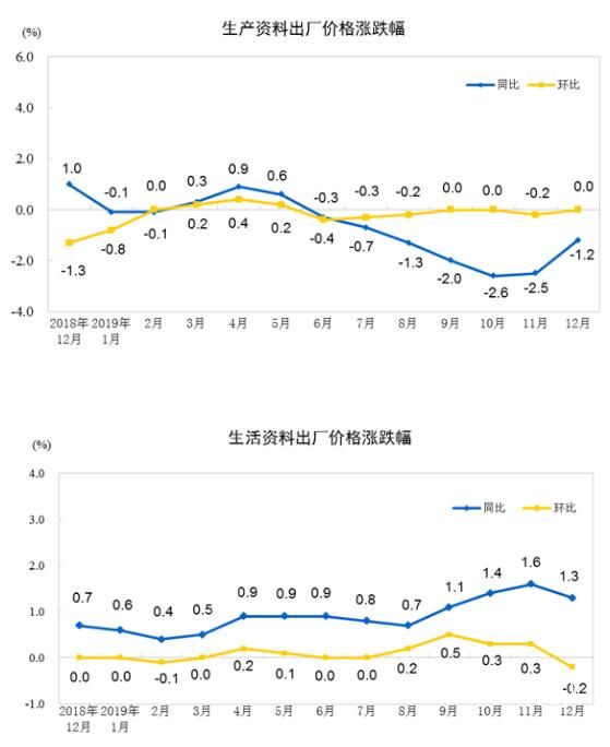 2019年12月份,全國工業生產者出廠價格同比下降0.5%,環比持平;工業生產者購進價格同比下降1.3%,環比持平。2019年全年,工業生產者出廠價格比上年下降0.3%,工業生產者購進價格下降0.7%。