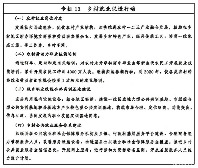 推動形成平等競爭、規范有序、城鄉統一的人力資源市場,建立健全城鄉勞動者平等就業、同工同酬制度,提高就業穩定性和收入水平。健全人力資源市場法律法規體系,依法保障農村勞動者和用人單位合法權益。完善政府、工會、企業共同參與的協調協商機制,構建和諧勞動關系。落實就業服務、人才激勵、教育培訓、資金獎補、金融支持、社會保險等就業扶持相關政策。加強就業援助,對就業困難農民實行分類幫扶。