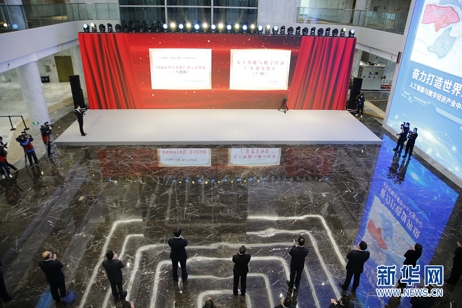 現場,嘉賓共同見證廣州人工智能與數字經濟試驗區2020年重點項目集中電子揭牌、簽署入駐協議、開業和開工。新華網 伍嘉煒 攝