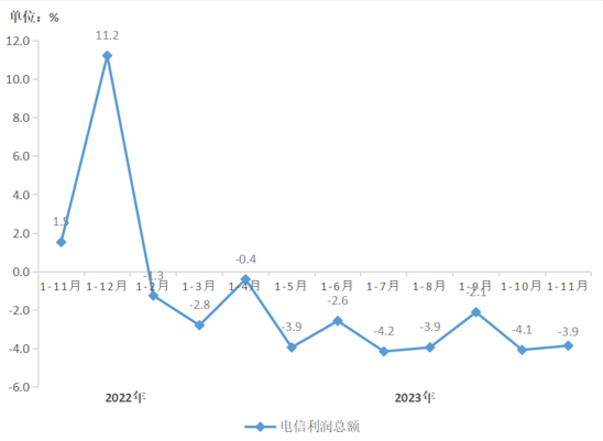 電信利潤增速降幅收窄。1-11月,電信利潤總額累計達到102.0億元,同比下降3.9%,降幅較1-10月收窄0.2個百分點。