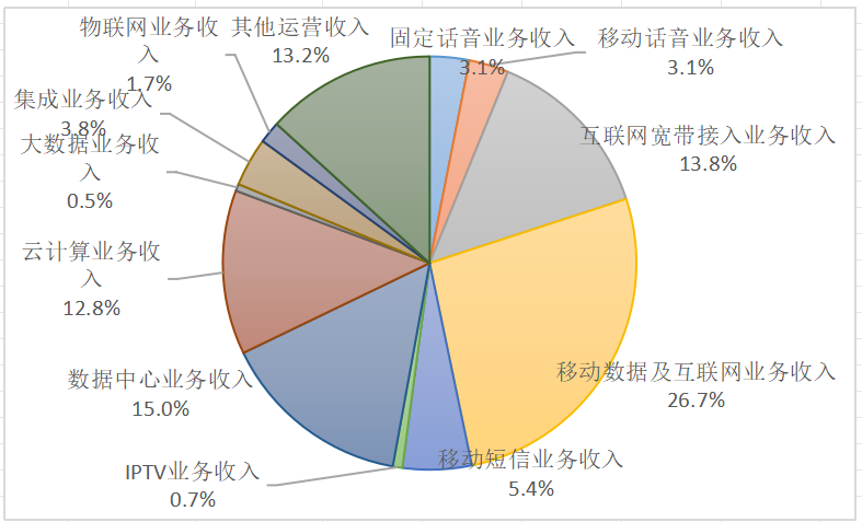 新興業務收入增幅收窄。三家基礎電信企業積極發展IPTV、互聯網數據中心、大數據、云計算、物聯網等新興業務,1-11月,共完成新興業務收入215.0億元,同比增長4.5%,增幅較1-10月收窄7.2個百分點,在電信業務收入中占比為32.9%。其中云計算收入同比增速達15.0%,大數據業務收入同比增速為1.8%,數據中心業務收入同比增速為1.7%,物聯網業務收入同比下降1.0%。