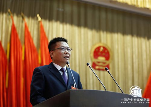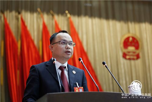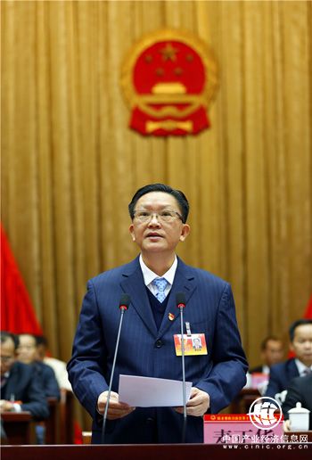 陵水黎族自治縣代縣長李鋒代表縣人民政府向大會作工作報告(陳思國 攝)