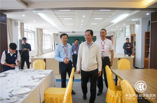 邢孔政一行在陵水縣政府副縣長林熾海的陪同下深入學校實訓室、運動場、宿舍樓、食堂等地,詳細了解學校基礎設施建設、專業設置、教育教學管理、教師隊伍建設以及招生、就業等情況,并召開座談會對陵水中職教育發展情況進行深入了解和交流。