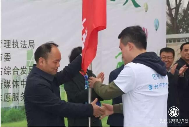 (銅川市副市長劉西林向青年志愿者隊伍授旗)