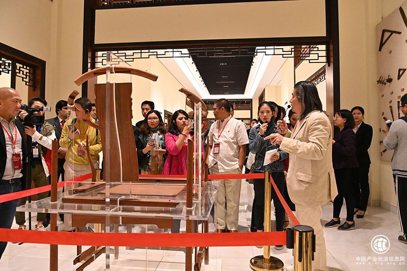 活動前,由中國家具協會傳統家具專業委員會常務主席、中國工美藝術大師、伍氏興隆明式家具藝術有限公司董事長伍炳亮引領嘉賓全面參觀了由其私人名字命名的黃花梨藝博館。